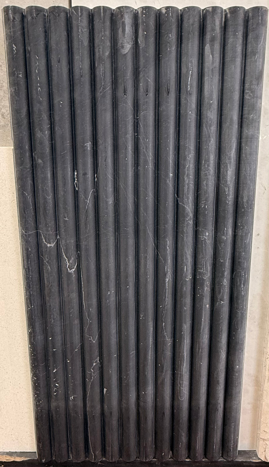 Introduce refined luxury to your poolside with Nero Marquina marble tiles. Crafted in a sophisticated 12x24 format, each tile showcases a honed finish that exudes understated elegance while maintaining practical safety with its textured surface. The fluted detailing adds architectural interest and contemporary dimension to your design scheme. Rich black tones punctuated by delicate white veining create a statement of timeless beauty. These premium marble tiles blend aesthetic refinement with functional durability, establishing a distinguished outdoor sanctuary that reflects your discerning taste.